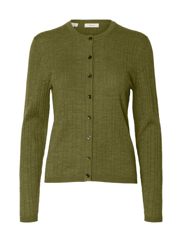 SLFTHEA Knit Merino Pointelle Cardigan, avocado